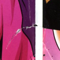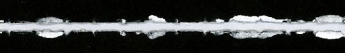 弱い紙どうしの場合、上の写真のように互いに紙の繊維ごと剥がし合って、剥がされた方は白くなり、