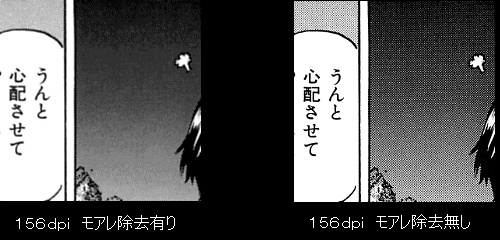 当店は漫画が主体ですので、指定が無い限りモアレ除去有りが標準です。
